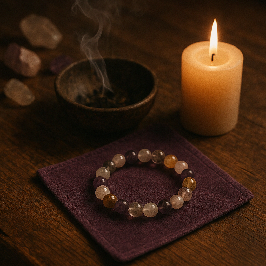 Unsere Kristall-Armbänder, energetisierten Steine und Räucherwerk sind nicht als reine Accessoires gedacht. Jedes Stück wird mit der Intention erschaffen oder ausgewählt, deine persönliche spirituelle Praxis zu unterstützen – sei es als Fokuspunkt in der Meditation, als Träger einer klaren Absicht oder als tägliche Erinnerung an ein bewussteres Sein im Alltag.